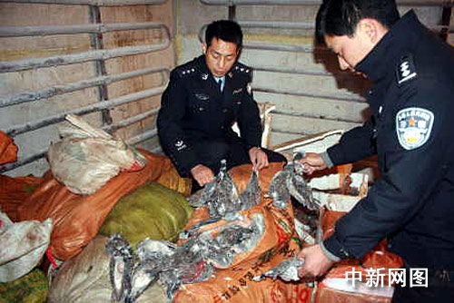11月7日,太康县公安局五里口派出所接群众举报:该乡村民李某家中藏有毒鸟用的“药品 ”及大量被毒死的鸟。民警立即赶到李某家中将其控制,并当场搜出斑鸠、麻雀、野鸡、喜鹊等1172只鸟类尸体及毒鸟用的“药品”5.5公斤。接着,民警又在该乡一座冷库内,查获李某藏匿于此的斑鸠、麻雀、野鸡等鸟类尸体21081只。
