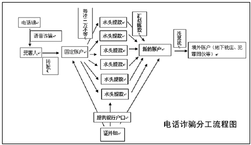 据警方介绍,犯罪分子先通过“语音组”骗取受害人将钱转账到固定账号,再由多个俗称“水头”的提款人员将账户里的钱分批转入从“办证组”收购得来的银行卡账户上。