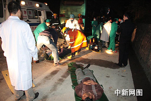 经查实,大客车上共有二十六人不同程度受伤,伤员随后被送往当地红会等多家医院救治。记者清晨六时许从几家医院获悉,这二十多名伤者多为骨折,目前均已住院治疗,重伤者暂无生命危险。