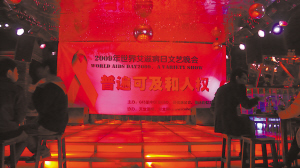 昨天晚上,天下着细雨,渝中区上清寺附近的酒吧里,同性恋者举行世界艾滋病日文艺晚会,我市百余名男男同性恋聚集在此。记者以彩虹工作组防艾志愿者身份,走近男男同性恋者,所见所闻,发人深省。