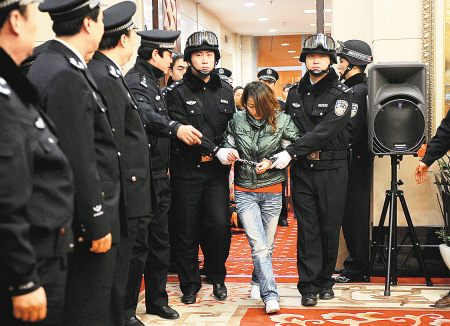 8时12分,机场西贵宾厅的通道门打开了,中央及省市媒体的几十名记者蜂拥而上。被民警押着的嫌疑人——拐骗偷走婴儿的葛倩茹走了出来。低着头,记者只能见到她染的黄色卷发,看不清脸,上身穿着青色羽绒服,下身穿着牛仔裤,看上去个子1.5米左右。未安排任何采访,葛倩茹被直接带出大厅,押到警车上。