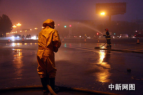 据悉,事发现场位于许昌市城市主干道,当时又适逢下班高峰期,过往车辆、行人特别多。为安全起见,消防官兵和交警在事发现场500米范围内拉起警戒线,严禁使用手机和有明火产生,同时交警部门对莲城大道和魏文路进行了临时双向交通管制,禁止一切无关人员和车辆通行。根据现场情况,消防官兵迅速用两个消防开花水枪和一个消防水炮造出三道大水幕,阻隔天然气向周围继续扩散,并向泄漏的路面处进行喷淋。