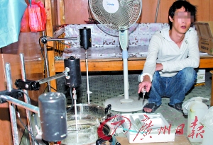 7月初,江门警方将“地主”贩卖毒品的线索转给佛山市公安局刑警支队,但“地主”闻风潜伏,停止了制贩毒活动。专案民警经过近4个月的深入摸查,发现该团伙不但贩卖毒品,还利用家庭式作坊从事制造毒品活动。