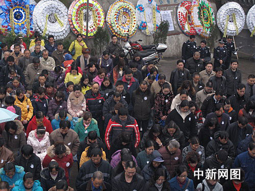 中新网成都12月14日电(王德明)14日,四川宜宾阴雨绵绵。下午四点,因公殉职的宜宾县警察文万彬追悼会在宜宾县殡仪馆举行。公安部送了花圈,四川省公安厅发来唁电,共青团宜宾市委发出了向文万彬同志学习的通知。省市公安局领导、宜宾市县有关领导、滇两省和全市兄弟区县的同行、以及数千群众自发前来吊唁。