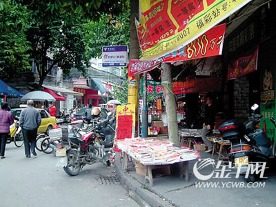 羊城晚报记者继续驱车来到城新路后街路口附近,发现一家体彩点的门口也摆起摊档卖起各色日历。除了普通日历,这里的“六合彩”日历五花八门。一本以香港明星阿娇为封面的《六合家中宝》,封面左侧有“全新绝密内幕版、准确率高达100%”等颇具煽动性的字样。翻开日历内页,每逢周二、周四,都有“家中宝特码睇真准!”字样,下分“五行谕码”、“首奖趣味诗谜”、“拆字合码”、“杀生肖”、“今日五行特码”、“旺弱门分析”等栏。名为《白堂神算》、《流公神算》等“神算日历”的内容则更为令人触目惊心。翻开《白堂神算》,除了首页是六合日历常年开码表、彩票宝典生肖鉴别表等外,还有16页“六合跨年彩图导航版”,这些导航版上竟印有一些穿三点式甚至裸体的女性图片。同样,在逢周二、周四的内页上,有所谓“内部信息”、“特码主攻”、“铁骨神算”等内容。