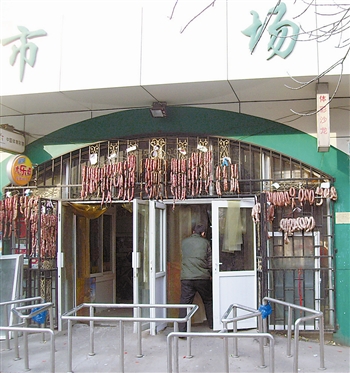 记者在新兴菜市场外看到,在该市场大门外的铁框上和大门左侧的窗框上,均挂满了成串的腊肠,足有几百根,远远望去好像挂上了“腊肠帘”。记者看到,由于几根腊肠在门框上挂的位置比较低,一些个子高的顾客进出时,头发总能碰到这些腊肠,大多数腊肠油质的外皮上沾满了厚厚尘土。市场内,自称是经销这些腊肠的男子说,把腊肠挂在室外主要是怕这些腊肠在市场里受热变质,他表示腊肠就应该挂在室外露天存放,这样可以保证腊肠鲜美的味道和口感,也能让这个“腊肠门帘”的创意为菜市场吸引来更多客人。而一些顾客则表示,这些生腊肠挂在室外被风吹日晒,缺少卫生安全保证,而且也太影响市容。随后,记者电话采访了本市某肉联厂从事产品卫生质保工作多年的刘小姐,她表示正规食品企业生产腊肠产品时,生产设备和存储环境都有严格的规定和要求,在户外没有任何卫生保证措施下存储晾晒腊肠,肯定不妥。