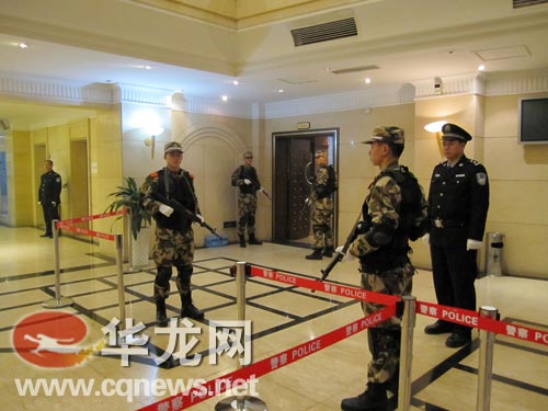 记者在法院现场看到,此次庭审安检非常严格,总共有三道防线。第一道在在法院周边50米左右,有交警戒严,社会车辆一律不得进入。第二道在法院楼下,已拉起警戒线,旁听群众、记者、律师等必须持有旁听证或相关证件才能入内。第三道线在进入法院时,所有人员必须接受安检,手提包全部寄存,手机、笔记本、相机等随身物品均不得带入法庭内。法院大门外和法庭门外均有特警持枪站岗,进入法院大楼内手机信号将会被屏蔽。