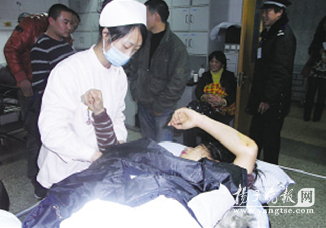 在中大医院急诊室,一女子拉着参与救人的两位热心女子,流着眼泪感谢她们。据她讲,受伤的是其妹妹,叫朱贵娟,今年23岁,是一家婚纱店的摄影师。当时她下班骑车回家,没想到遭遇车祸。多亏好心市民帮忙,两位大姐陪同妹妹来到医院看伤,她们还垫付了1000多元医药费。
