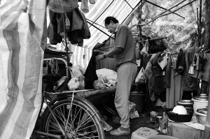 帐篷内乱七八糟,一张只能容下身子的木床上,被子、衣服堆放一起,煮饭工具、杂物等散乱一地(见右图,本报记者王凯摄)。两三平方米的空间,连转个身都困难。帐篷外杂草丛生,周边残留着房屋严重破损的痕迹,半裸露的砖头和墙壁,漆黑的瓦片,老旧的木门早已被虫噬。