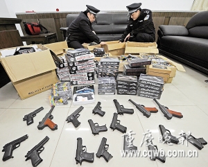 犯罪嫌疑人交代,仿真手枪从我市某县市场流出,准备运往四川遂宁销售。