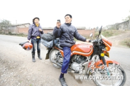 当天上午,丁小兵买了一辆摩托车,把两件行李绑在后座上,载着妻子踏上1400公里的回家路。为防迷路,他花1600元买了一部带GPS卫星导航功能的手机。