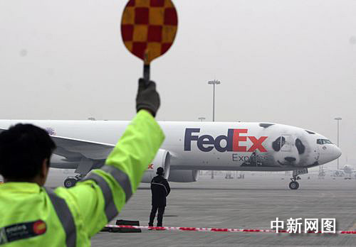 中新网成都2月5日电(杨杰 刘忠俊 吴晟伟 何浠)16:26分,喷涂大熊猫头像的“联邦熊猫快递号”波音777货机平稳地降落在成都双流国际机场,翘首以待的人们发出陈阵欢呼,“‘泰山''”、“‘美兰’回家了!”