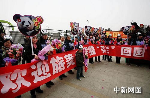 图:旅美大熊猫“泰山”“美兰”顺利回国