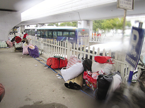 市场关门放假之后,那些滞留在门口的民工只好收拾好行囊,和其他工友联系住处。一位安徽籍民工告诉记者,他和其他几个老乡准备去另一个老乡打工的工地那里暂时住两天。放假了工地也停工,但是住的地方还是有的。而还有一些民工索性又将行李搬到了安德门地铁站附近的高架桥下,“现在工作也不好找,住旅馆实在太贵,我们只好再住回高架桥下。”民工们搬进高架桥下后,个个哀声叹气,但也有一些情绪乐观的,跑进了地铁站内打扑克取暖消遣。(记者 曹卢杰 裴睿)