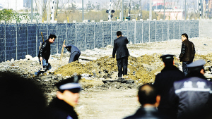 今天(20日)上午7时30分许,几个外来人员在殷行路军工路口一工地内,撬开木门上的门锁,入内盗挖地下废弃的水管。他们正在大肆挖掘时,地面泥土突然塌陷,三人被埋在坑内,其中一人轻伤,两人窒息身亡。
