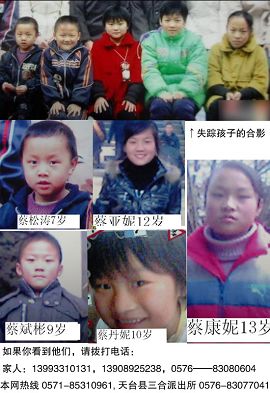 失踪名单被公布在了各大论坛,其中一位失踪儿童蔡松涛的父亲叫蔡修明,另4名儿童是他弟弟的孩子。