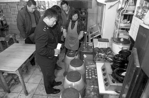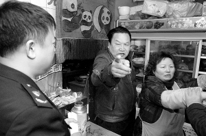 15时,宽城工商分局稽查队的勾队长会同凯旋路工商所的栗所长与记者一起来到了该饭店。进入饭店后,执法人员给饭店老板看了证件。随后,欲进入饭店后侧的屋子里进行检查,结果却遭到了饭店老板夫妇的极力阻挠。