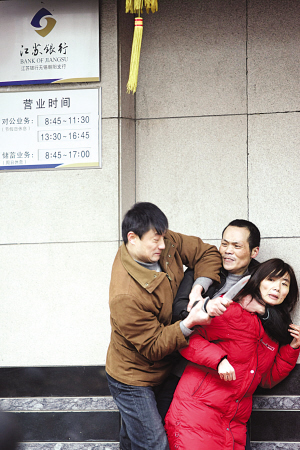 一名持刀歹徒劫持一名女子,尖刀架在人质脖子上,面对上千名围观群众,歹徒咆哮叫嚣着。周边警察拉起了警戒线,警车停满整条路,救护车在一旁随时待命,十多名持枪特警环围在现场。银行对面的屋顶上,狙击手冷峻的枪口已经瞄准歹徒的额头……这并不是警匪电影中的一幕,而是昨天(3日)上午8点多钟,发生在无锡永乐路江苏银行门口的惊险一幕。