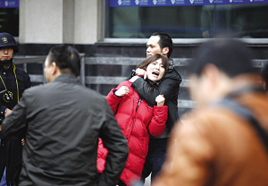 时间一分一秒过去。当歹徒握刀的右手突然举起的一刹那,一名特警跨步上前,紧紧锁住其手腕,将其制服。几乎同时,数名特警冲上前,将歹徒扑倒在地,人质安全获救。现场千名围观群众鼓掌喝彩。