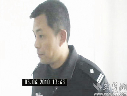 记者现场看到,一辆车牌为“鄂A8447警”的警车,停在事发地不远处,三个轮胎被人戳破。