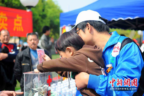 中新网宜昌4月4日电(记者刘良伟 郭晓莹)4日上午9时,湖北宜昌举行“捐献一瓶水 爱润大西南”的大型爱心捐助活动,得到了民众的踊跃响应,上午10时,现场已收到捐款14万元。截至发稿时止,捐款活动仍在继续。