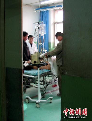 在廊坊市人民医院急救室,被砸伤的其中一名工人仍在抢救。据门外等候的一名伤者工友介绍,事故中的两名工人均来自江苏,下午2点左右二人在实施浇灌砂浆作业时,塔吊用以悬吊灰斗的钢丝绳突然断裂,装运混凝土的“灰斗”落下砸中二人。据该院医生介绍,一名工人伤势较重,送来时已经死亡,另一名伤势较轻者正在抢救。