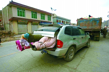 前晚9点,玉树州医院,当在玉树打工的重庆忠县人张杰明、高传洪含泪将自己在地震中遇难的妻子抬上农用车时,心情异常沉重。