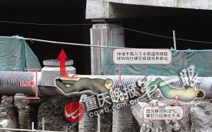 钟福平说,听到工地冲进抢包嫌犯,他也慌忙来到污水管处。交巡警和几名市民已在现场。钟福平告诉交巡警,这是解放碑商圈的排污管道,管道直径0.8米,只容得下一个人爬行。