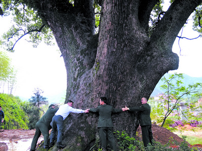 昨日,炎陵县三河镇境内发现一棵胸围超过10米的特大罕见古樟树。该树位于炎陵县三河镇石鼓村华山组,正在修建的衡茶吉铁路绕树而过。此古樟树的树干树根都是实心,没有虫蛀。树根往上大约2米左右分出5根巨大分枝,树高达25米左右。整个古樟向四周延伸后占地近2亩。经初步测量,树围最大处达到12米左右,8个成年人都合抱不过来。