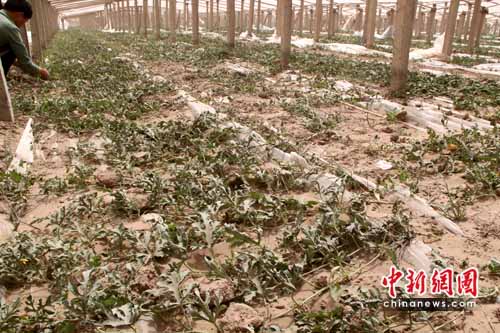 四月下旬正值吐鲁番地区葡萄、哈密瓜等幼苗生长季节。新疆农业厅说,这次大风灾害使全吐鲁番地区春季作物遭受到“毁灭性打击”。按照吐鲁番地区葡萄年均种植面积45万亩测算,这意味着有一半以上的葡萄种植基地受灾。