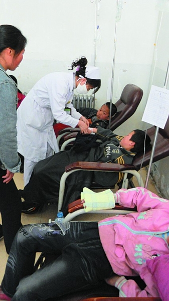 4月30日,9名特殊的病人在甘肃省儿童医院接受治疗,他们都是近日从陇西县紧急转来医治的小学生。原来,在4月23日上午8时许,陇西县首阳镇三十铺小学68名学生突然集体中毒,大多数学生不同程度出现头晕、四肢无力、腹痛、视力不清等症状。记者了解到,这次转到兰州接受治疗的学生有11名之多。