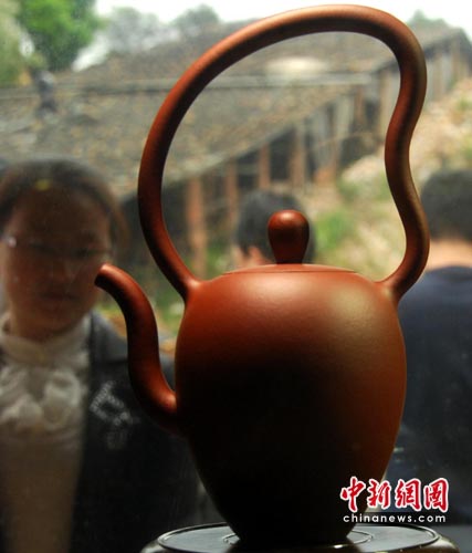 中新网德化5月4日电(林永传 寇婉琼)“有德有壶”福建德化月记窑国际壶艺双联展,正在“中国瓷都”福建德化月记窑举行。此次展览展示了来自荷兰、英国、新西兰、印度及国内一批陶艺大师的精美陶瓷艺术品,展览时间将延续到5月10日。