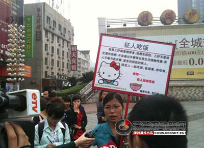 “锄草”此前曾在上海、广州、南京等地举牌“征人吃饭”,被许多权威媒体报道过。今天(5月19日)是世界乙肝日,“锄草”的活动更加受人瞩目。(潇湘晨报滚动新闻实习记者 张振 向帅 唐利华)