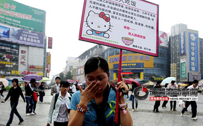 望着“锄草”举着牌子站在步行街上,不少市民投来惊讶的眼神,一看牌上的宣传知识,大家态度各异。