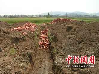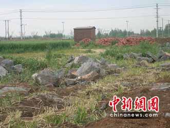 在现场记者看到,农田里几位民工正忙碌着砌砖搭建围墙,而石头、砖块等材料则堆放在还没有被铲麦子身上。在不远处,虽然还有几百亩麦子没有被铲,但是已被过往的运输车辆碾压成崎岖的小路。