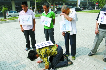 正当人们念着漫画里讽刺滑稽的对话时,一中年女子突然跪倒在地,嘴里念叨着:“当法官也不能恁黑心啊,黑的都是我们这些农民工的血汗钱,求求好心人帮帮我们吧。”