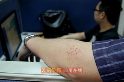 近段时间,成都一些写字楼上班的白领被身上突然生出的皮肤红疹折腾得够呛,这些红疹奇痒难耐,用手一抓,皮肤会出现点点斑迹或者红肿现象。昨日,在成都红星路一家企划公司上班的曾先生称,他们单位的同事是谈“痒”色变,几乎没人能逃脱这种瘙痒症状。