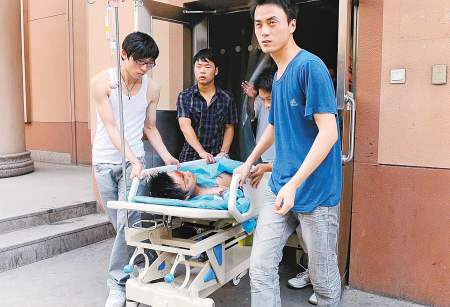 昨日下午5时许,高新医院神经外科办公室内,医生正在向伤者王艳斌的老师介绍病情。“头部左侧有血肿,急需手术,但很有可能下不了手术台。”老师在手术单上签字后,王艳斌被推进了手术室。