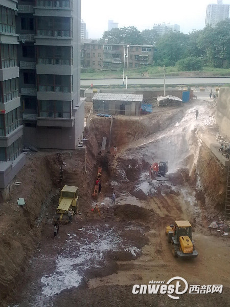 据中国之声《央广新闻》13时25分报道,西安长安区自来水公司紧邻一栋30层高的住宅楼违规深挖蓄水池,小区业主及网友将之称为“楼坑坑”。