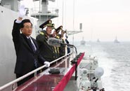 中国历史上的首次多国海军检阅活动二十三日下午在青岛附近黄海海域举行。中国国家主席、中央军委主席胡锦涛乘阅兵舰“石家庄”号导弹驱逐舰,检阅中国海军的潜艇、水面舰艇、海军航空兵和海军陆战队等作战兵种,并检阅了来访的十四个国家的二十一艘舰艇。【中新网海军阅兵专题】