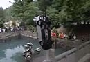 台湾一位司机停车忘记拉手刹,车子顺坡下滑,差点撞上等红灯的另外两辆车子。