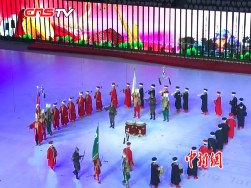 【解说】“七城会”闭幕式晚会由来自11个国家的军乐团带来的军乐表演,都有着浓郁的国家民族特色,最后在11支国家军乐团共同演奏的第七届城市运动会的会歌《超越辉煌》中,“七城会”谢幕。