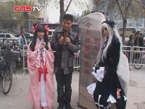 福州市民:我是从美国回来的。特地飞来参加这个11月11号的光棍节,我今天还不懂福州在哪里有组织这个,今天10点45分才从报纸上看到两位女士组织在五一广场过这样的节日。希望她们组织得更好。