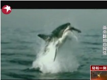 震撼瞬间 大鲨鱼跃出水面捕食海豹