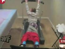 跑步机上练滑雪板 不慎摔倒出洋相