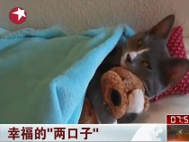 猫咪怀抱玩具小熊睡觉 "小两口"亲密无限