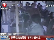 女售票员遭男子飞踹 车上乘客冷眼旁观