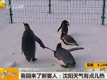 沈阳来了四只小企鹅 怕热肚皮贴雪地纳凉