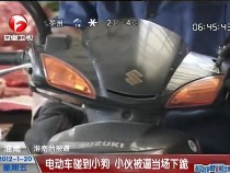 小伙骑车碰到小狗 被逼当众下跪自抽耳光