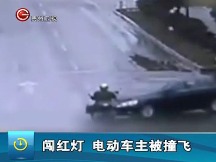 实拍:电动车主闯红灯 电动车粉碎人被撞飞